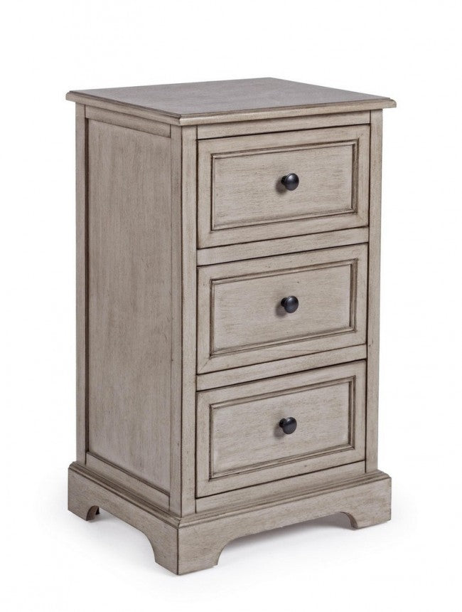 STRUTTURA IN LEGNO DI PINO. SCHIENALI E LATERALI IN MDF. FONDO CASSETTI IN MDF. FINITURA CON VERNICE A BASE D'ACQUA. POMELLI IN ZINCO.