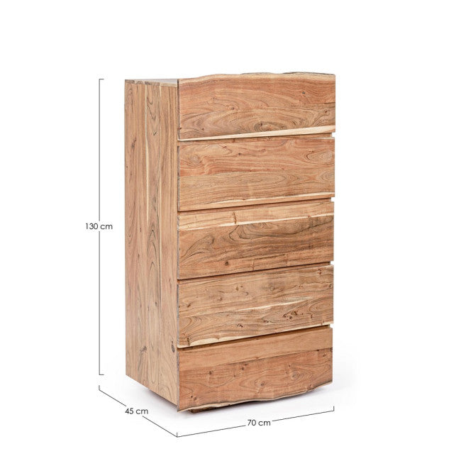 LEGNO DI ACACIA. FINITURA A BASE DI VERNICE POLIURETANICA. FRONTALE CASSETTO CON BORDI IRREGOLARI (EFFETTO LEGNO VIVO). ESSENDO LAVORATO A MANO, LE FORME E LE MISURE DEL LEGNO SONO SOLO INDICATIVE. TUTTI I PRODOTTI SARANNO DIVERSI L'UNO DALL'ALTRO.