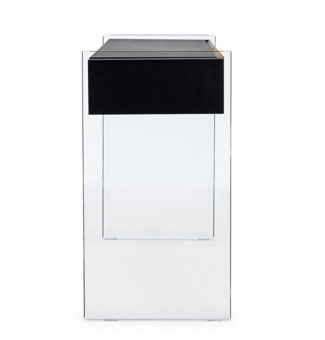 MDF RIVESTITO CON CARTA MELAMINICA EFFETTO LEGNO. FIANCHI IN VETRO NON TEMPERATO SPESSORE 12MM. DA ASSEMBLARE.