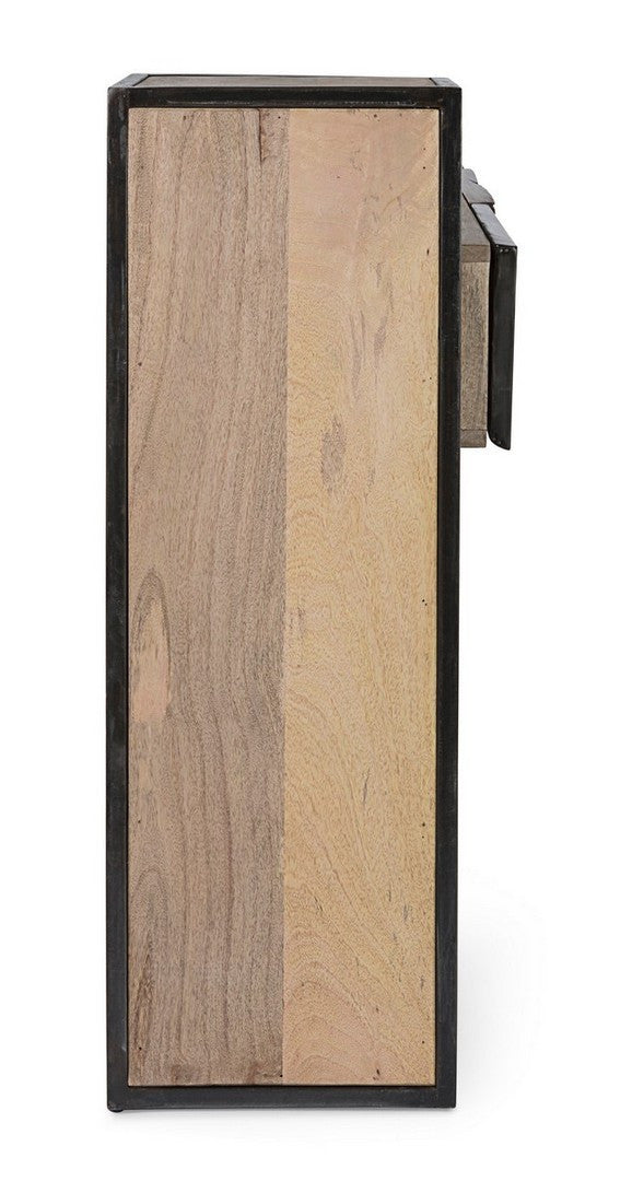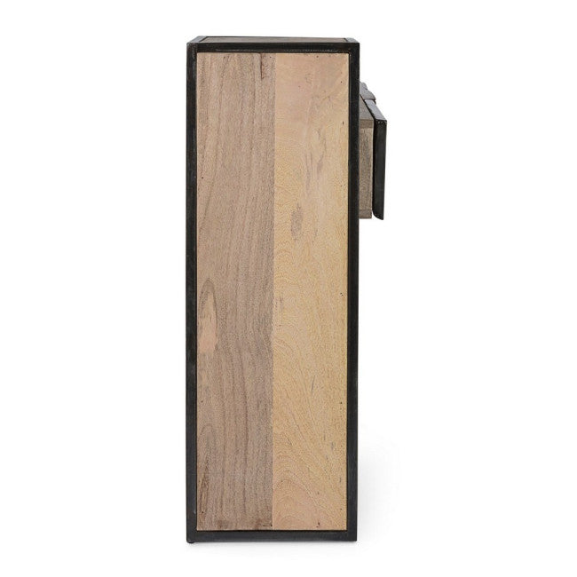 STRUTTURA IN LEGNO MANGO ED ACCIAIO, SCHIENALE IN COMPENSATO. FRONTALE ANTE E CASSETTI IN LEGNO RICICLATO O LAMINA DI ACCIAIO O FINITURA IN FIBRA DI CEMENTO. FINITURA ACRILICA PROTETTIVA. PIEDINI REGOLABILI. IL PRODOTTO IN LEGNO RICICLATO È CARATTERIZZATO DALLA PRESENZA DI TASSELLI IN LEGNO DI DIVERSE SPECIE E COLORE. EVENTUALI FESSURE, CREPE O IMPERFEZIONI, CHE POSSONO GENERARSI ANCHE NEL CORSO DEL TEMPO, SONO CARATTERISTICHE DI QUESTO MATERIALE E RENDONO OGNI PEZZO UNICO E ORIGINALE. DA ASSEMBLARE.