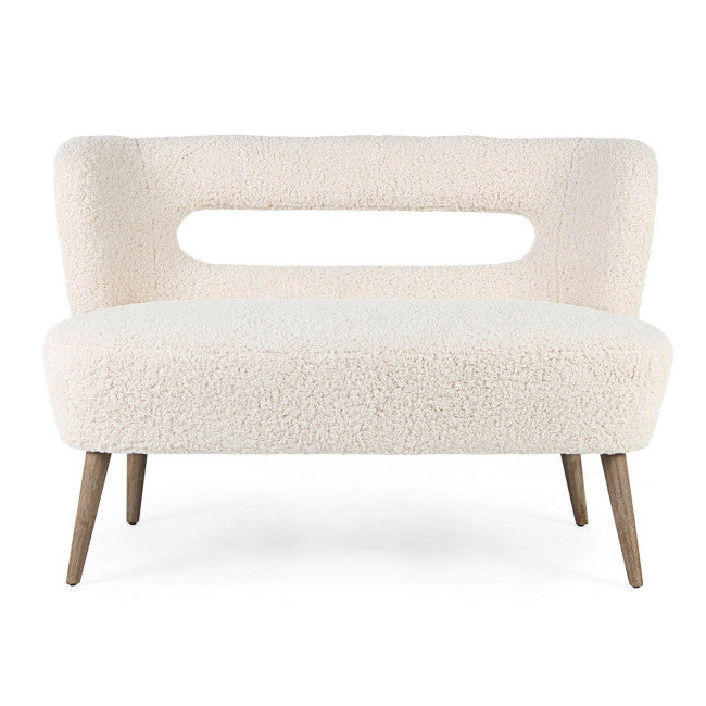 STRUTTURA IN LEGNO DI PINO. GAMBE IN RUBBER WOOD. RIVESTIMENTO IN POLIESTERE EFFETTO LANA, DENSITA' IMBOTTITURA IN SCHIUMA POLIURETANICA 24KG/M3. NON SFODERABILE. GAMBE DA ASSEMBLARE.