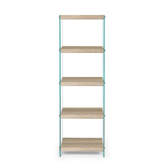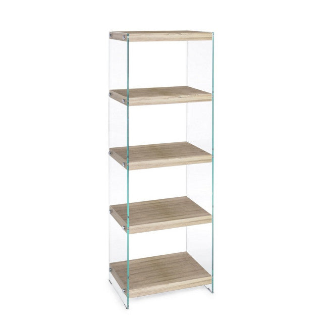 MENSOLE IN MDF RIVESTITE IN CARTA MELAMINICA EFFETTO LEGNO. FIANCHI IN VETRO TEMPERATO SPESSORE 12MM. DA ASSEMBLARE.