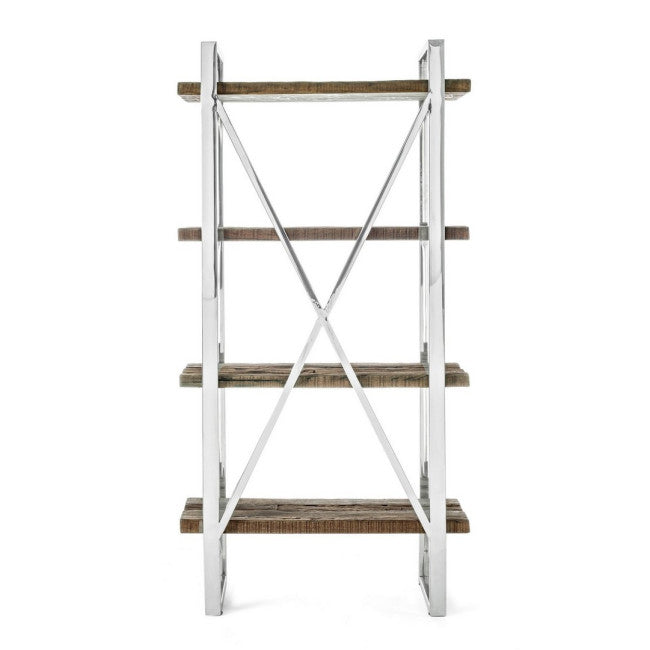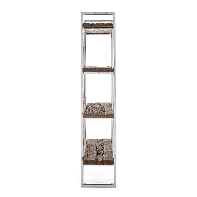 STRUTTURA IN ACCIAIO INOSSIDABILE, PIANI IN LEGNO RICICLATO. FINITURA NATURALE. IL PRODOTTO IN LEGNO RICICLATO È CARATTERIZZATO DALLA PRESENZA DI TASSELLI IN LEGNO DI DIVERSE SPECIE E COLORE. EVENTUALI FESSURE, CREPE O IMPERFEZIONI, CHE POSSONO GENERARSI ANCHE NEL CORSO DEL TEMPO, SONO CARATTERISTICHE DI QUESTO MATERIALE E RENDONO OGNI PEZZO UNICO E ORIGINALE.