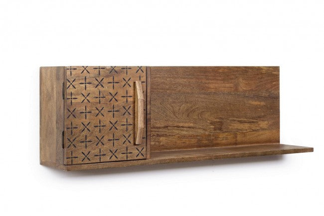 Legno di mango. Finitura a base di nitrocellulosa. Decorazioni dipinte a mano. Misure 103L - 20P - 31.9h