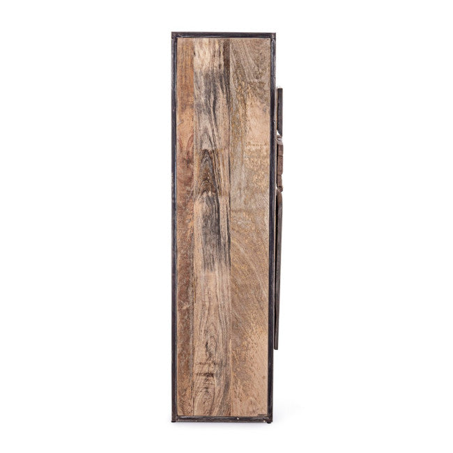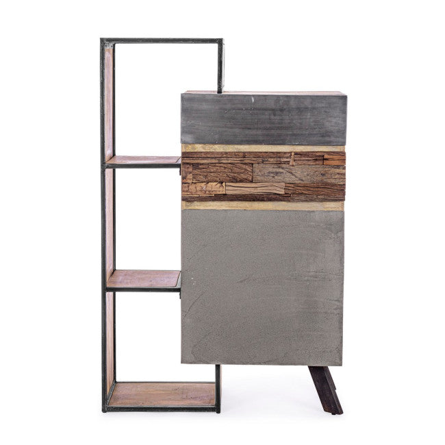 STRUTTURA IN LEGNO MANGO ED ACCIAIO, SCHIENALE IN COMPENSATO. FRONTALE ANTE E CASSETTI IN LEGNO RICICLATO O LAMINA DI ACCIAIO O FINITURA IN FIBRA DI CEMENTO. FINITURA ACRILICA PROTETTIVA. PIEDINI REGOLABILI. IL PRODOTTO IN LEGNO RICICLATO È CARATTERIZZATO DALLA PRESENZA DI TASSELLI IN LEGNO DI DIVERSE SPECIE E COLORE. EVENTUALI FESSURE, CREPE O IMPERFEZIONI, CHE POSSONO GENERARSI ANCHE NEL CORSO DEL TEMPO, SONO CARATTERISTICHE DI QUESTO MATERIALE E RENDONO OGNI PEZZO UNICO E ORIGINALE.