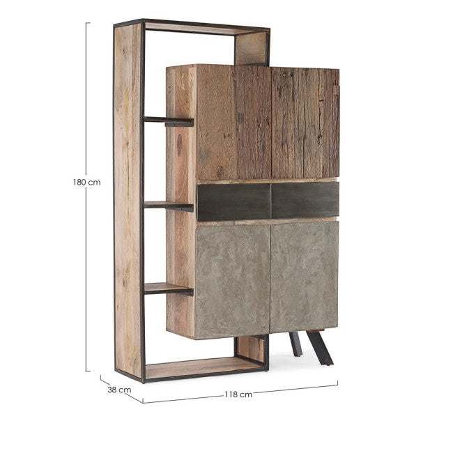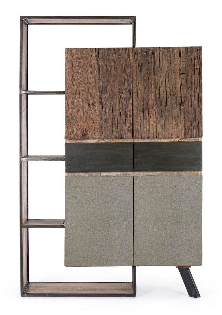 STRUTTURA IN LEGNO MANGO ED ACCIAIO, SCHIENALE IN COMPENSATO. FRONTALE ANTE E CASSETTI IN LEGNO RICICLATO O LAMINA DI ACCIAIO O FINITURA IN FIBRA DI CEMENTO. FINITURA ACRILICA PROTETTIVA. PIEDINI REGOLABILI. IL PRODOTTO IN LEGNO RICICLATO È CARATTERIZZATO DALLA PRESENZA DI TASSELLI IN LEGNO DI DIVERSE SPECIE E COLORE. EVENTUALI FESSURE, CREPE O IMPERFEZIONI, CHE POSSONO GENERARSI ANCHE NEL CORSO DEL TEMPO, SONO CARATTERISTICHE DI QUESTO MATERIALE E RENDONO OGNI PEZZO UNICO E ORIGINALE.