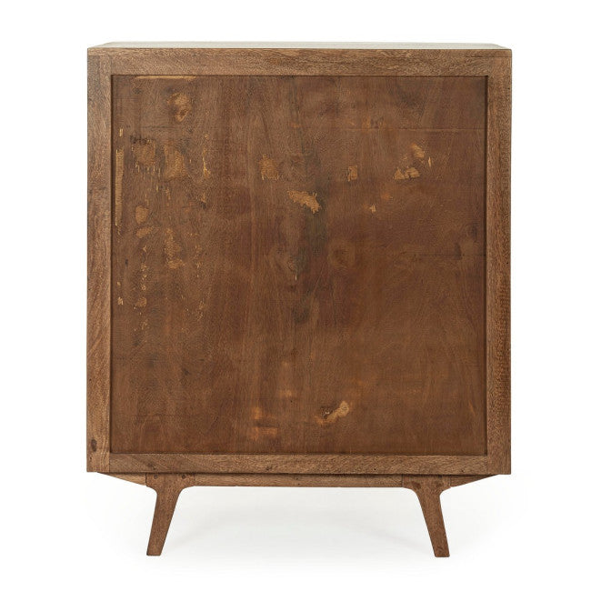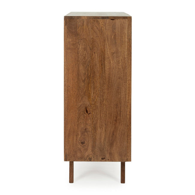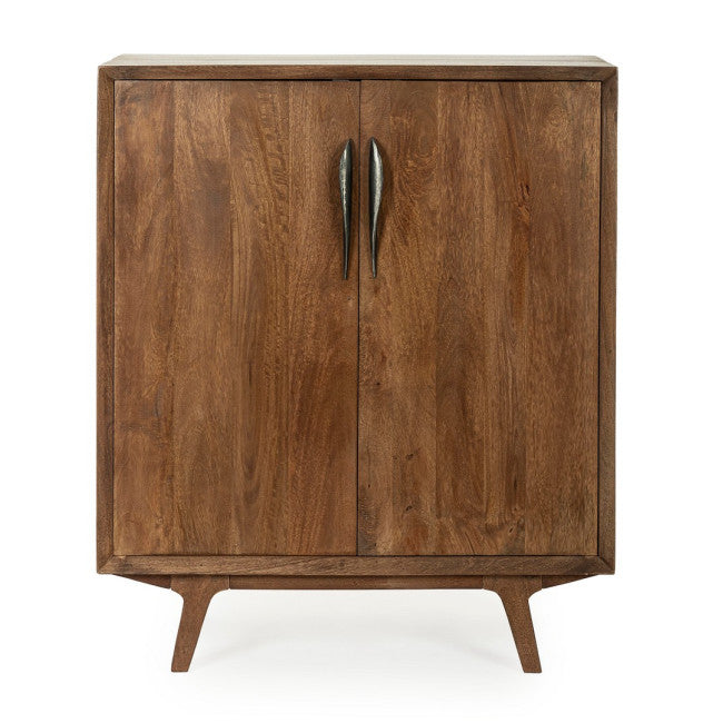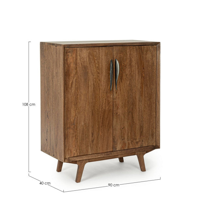 STRUTTURA E GAMBE IN LEGNO DI MANGO CON FINITURA A BASE D'ACQUA. SCHIENALE IN COMPENSATO. VANO PORTA COMPRENSIVO DI MENSOLA, CASSETTO E PORTABOTTIGLIE. MANIGLIE IN ACCIAIO. GAMBE DA ASSEMBLARE.