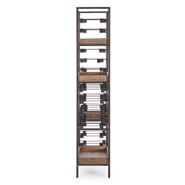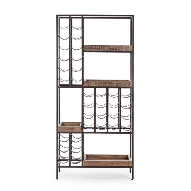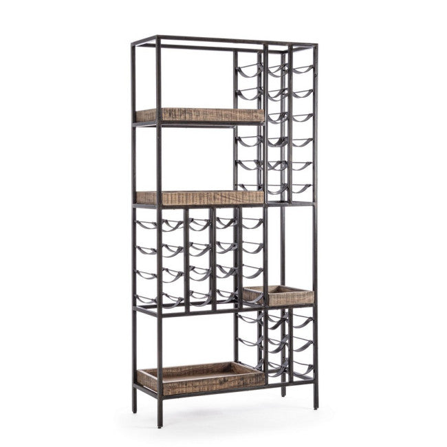 STRUTTURA IN ACCIAIO VERNICIATO A POLVERE EPOSSIDICA. PIANI IN LEGNO D'ACACIA. FINITURA ACRILICA PROTETTIVA. PORTA BOTTIGLIE IN SIMILPELLE (PU).
