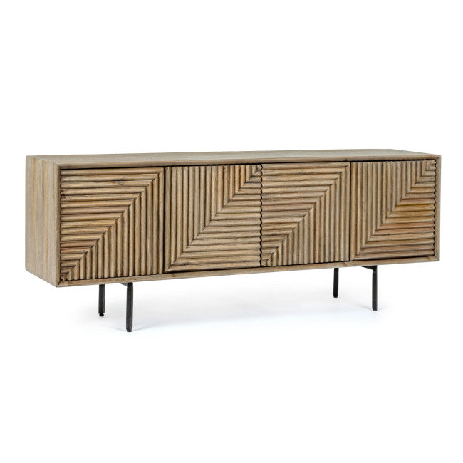 STRUTTURA IN LEGNO DI MANGO, SCHIENALE IN MDF. FINITURA CON VERNICE A BASE D'ACQUA. GAMBE IN ACCIAIO. VANO PORTA COMPRENSIVO DI MENSOLA. GAMBE DA ASSEMBLARE.