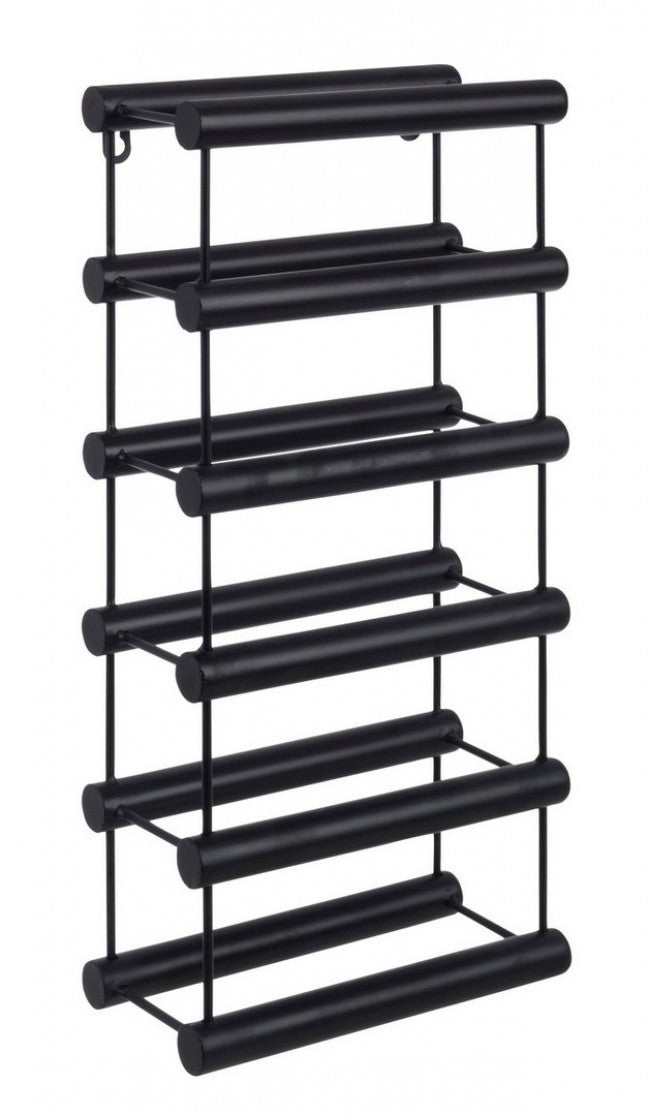ACCIAIO VERNICIATO A POLVERE EPOSSIDICA. PROVVISTO DI GANCI PER IL FISSAGGIO A PARETE IN POSIZIONE VERTICALE (N°6 BOTTIGLIE).