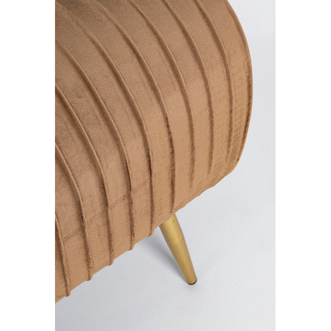 STRUTTURA IN MDF E COMPENSATO. GAMBE IN ACCIAIO CROMATO COLOR ORO. RIVESTIMENTO IN POLIESTERE EFFETTO VELLUTO A COSTE. DENSITA' IMBOTTITURA 30KG/M3. GAMBE DA ASSEMBLARE.