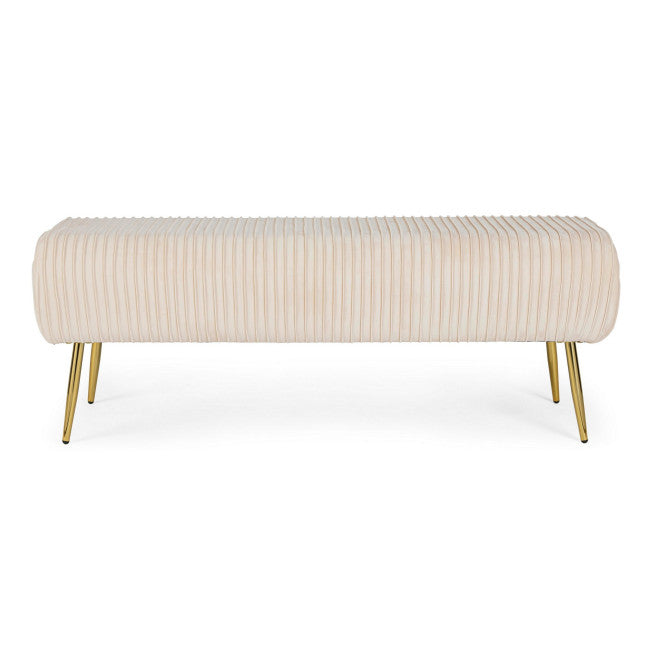 STRUTTURA IN MDF E COMPENSATO. GAMBE IN ACCIAIO CROMATO COLOR ORO. RIVESTIMENTO IN POLIESTERE EFFETTO VELLUTO A COSTE. DENSITA' IMBOTTITURA 30KG/M3. GAMBE DA ASSEMBLARE.