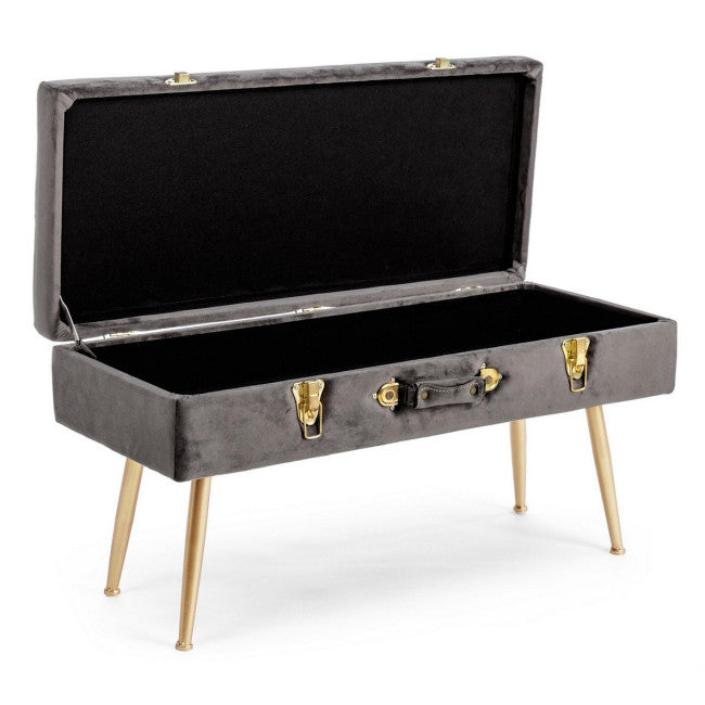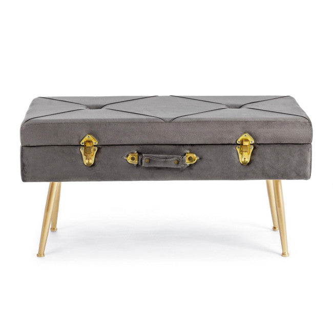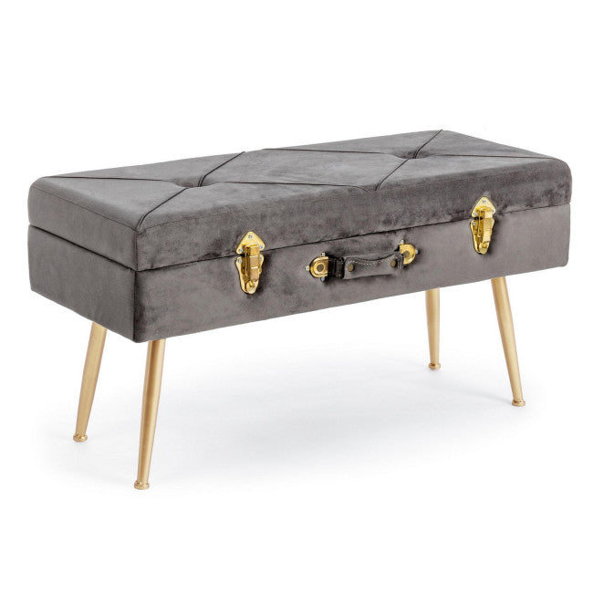 STRUTTURA IN MDF. GAMBE IN ACCIAIO VERNICIATO COLOR ORO. RIVESTIMENTO IN POLIESTERE EFFETTO VELLUTO. DENSITA' IMBOTTITURA 30KG/M3. GAMBE DA ASSEMBLARE.