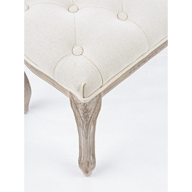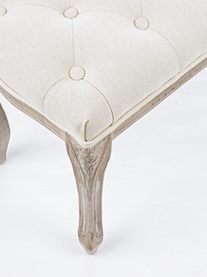 STRUTTURA IN LEGNO DI BETULLA E RUBBERWOOD. SEDUTA RIVESTITA IN TESSUTO (40% POLIESTERE, 30% COTONE E 30% LINO). GAMBE DA ASSEMBLARE.