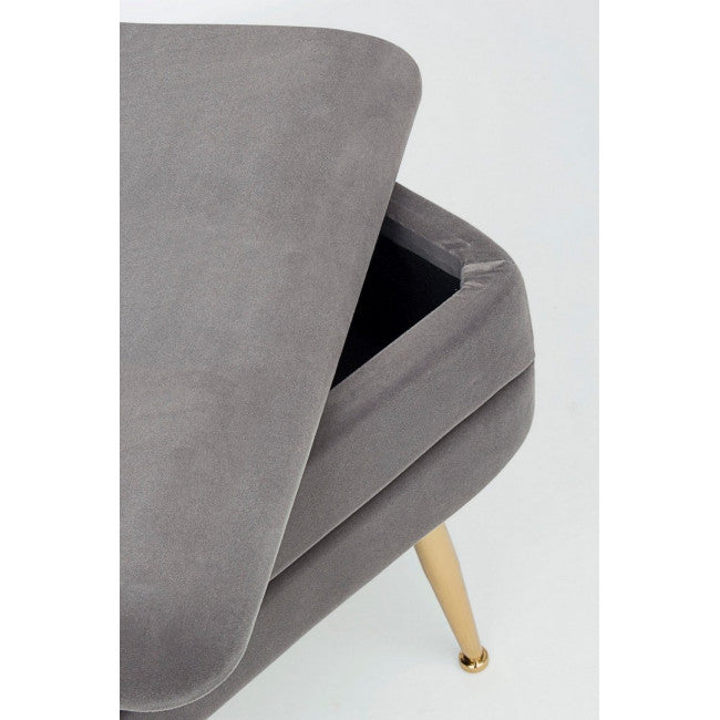 STRUTTURA IN MDF E COMPENSATO. GAMBE IN ACCIAIO CROMATATURA DORATA. RIVESTIMENTO IN POLIESTERE EFFETTO VELLUTO. DENSITA' IMBOTTITURA 30KG/M3. GAMBE DA ASSEMBLARE.