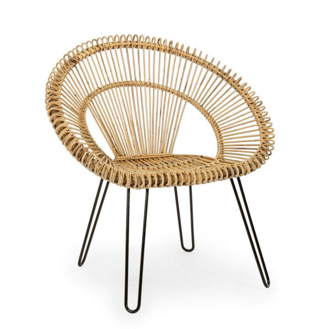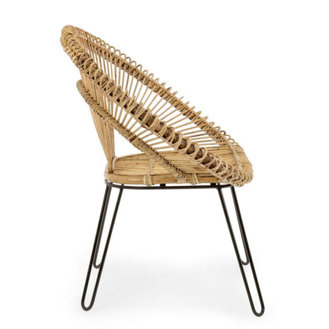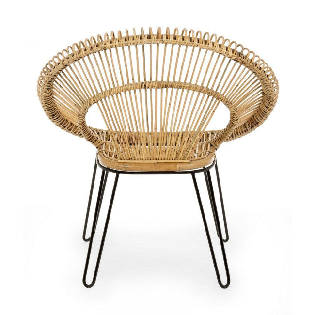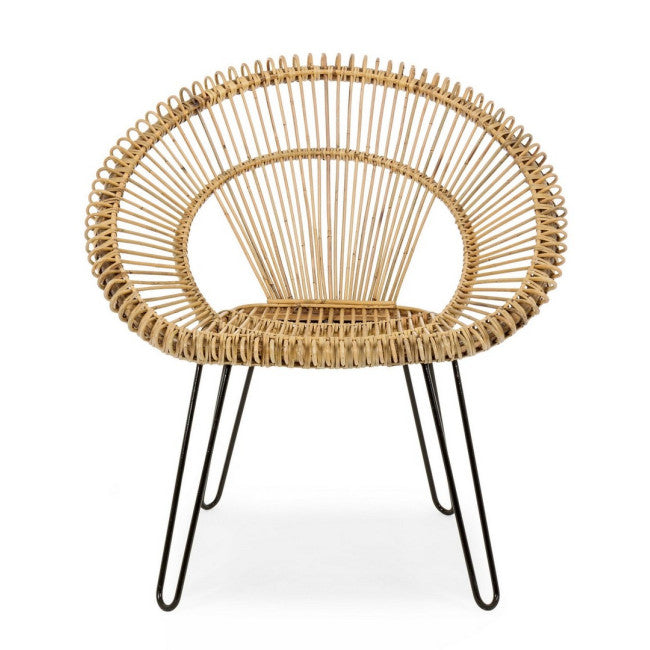 SEDUTA IN RATTAN ED INTRECCIO IN KUBU. RIFINITURA CON VERNICE MELAMINICA. GAMBE IN ACCIAIO VERNICIATE A POLVERE EPOSSIDICA. SI RACCOMANDA DI NON ESPORRE L'ARTICOLO ALLA LUCE DIRETTA DEL SOLE ED ALLE INTEMPERIE. GAMBE DA ASSEMBLARE.