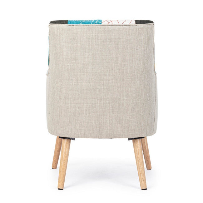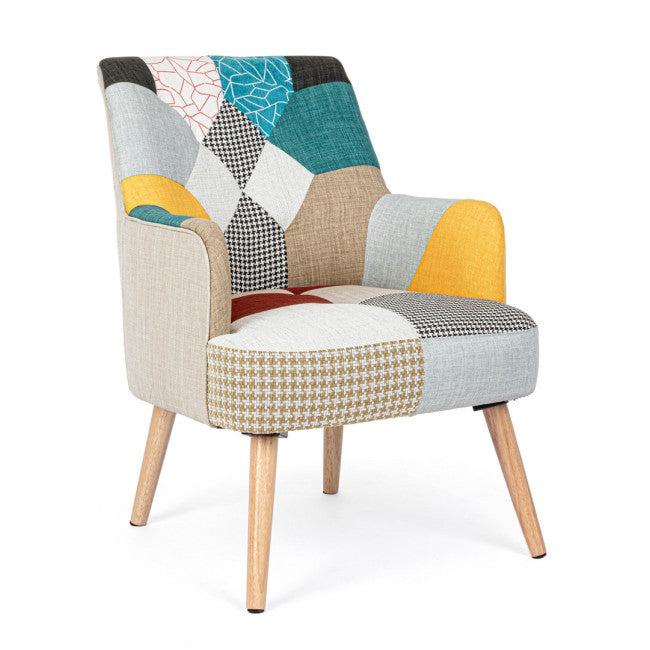 STRUTTURA IN RUBBERWOOD E COMPENSATO, VERNICIATURA A BASE DI NITROCELLULOSA. RIVESTIMENTO IN POLIESTERE CON LAVORAZIONE PATCHWORK. DENSITA' IMBOTTITURA SEDUTA 36KG/M3. GAMBE DA ASSEMBLARE.