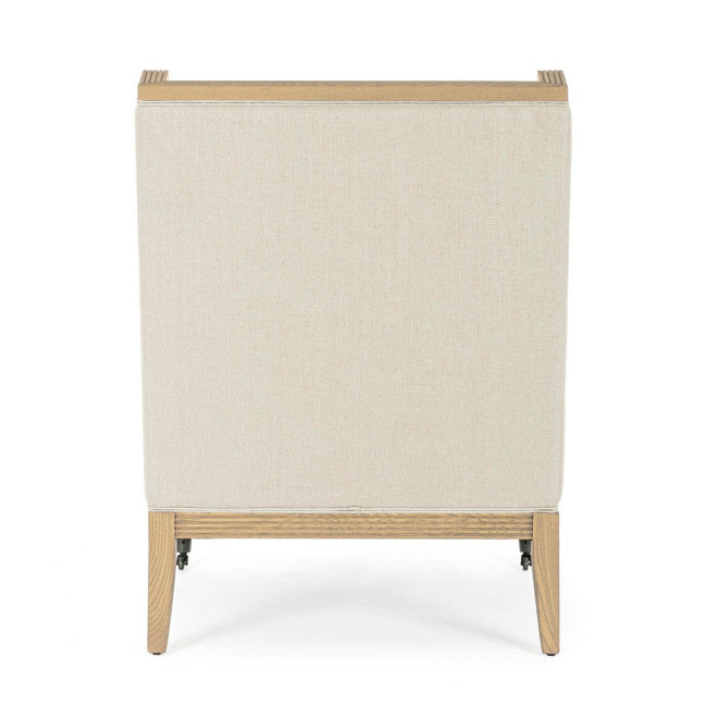 STRUTTURA IN LEGNO DI FRASSINO, RIVESTIMENTO 100% LINO. DENSITA' IMBOTTITURA IN SCHIUMA POLIURETANICA SEDUTA 30KG/M3, SCHIENALE 25KG/M3.CUSCINI SFODERABILI. COMPRENSIVO DI RUOTE ANTERIORI IN ACCIAIO ZINCATO.