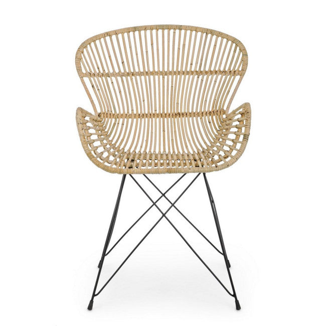 STRUTTURA IN ACCIAIO VERNICIATO A POLVERE EPOSSIDICA, INTRECCIO IN KUBU JAWIT. FINITURA NATURALE CON VERNICE A BASE DI NITROCELLULOSA. SI RACCOMANDA DI NON ESPORRE ALLA LUCE DIRETTA DEL SOLE ED ALLE INTEMPERIE. GAMBE DA ASSEMBLARE.