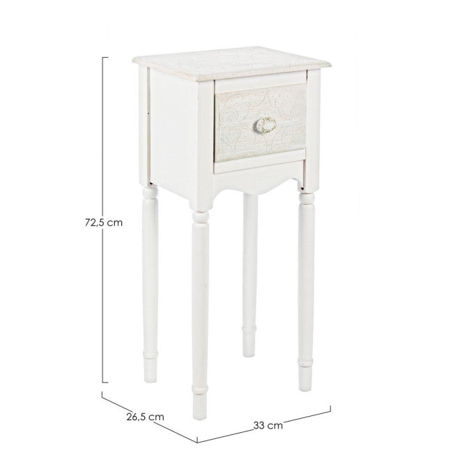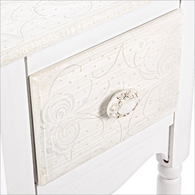 MDF. RIPIANI E FRONTALI CON MOTIVI FLOREALI INTARSIATI. RIFINITURA CON VERNICE OPACA A BASE D'ACQUA. MANIGLIE IN POLIRESINA. DA ASSEMBLARE.