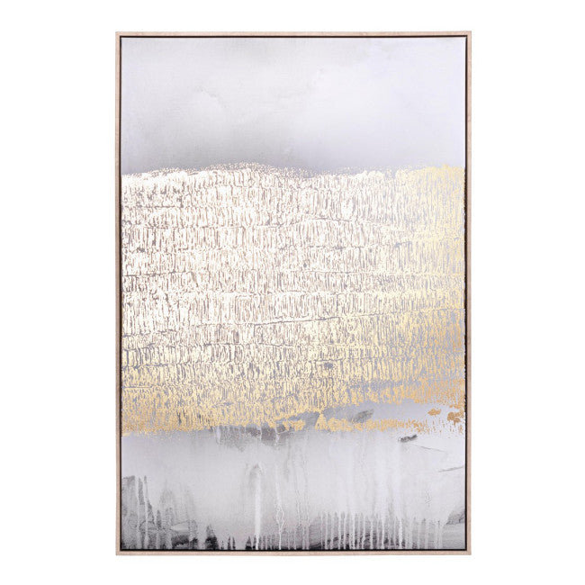STAMPA SU TELA CON APPLICAZIONI AD OLIO E FOGLI DORATI, MDF.