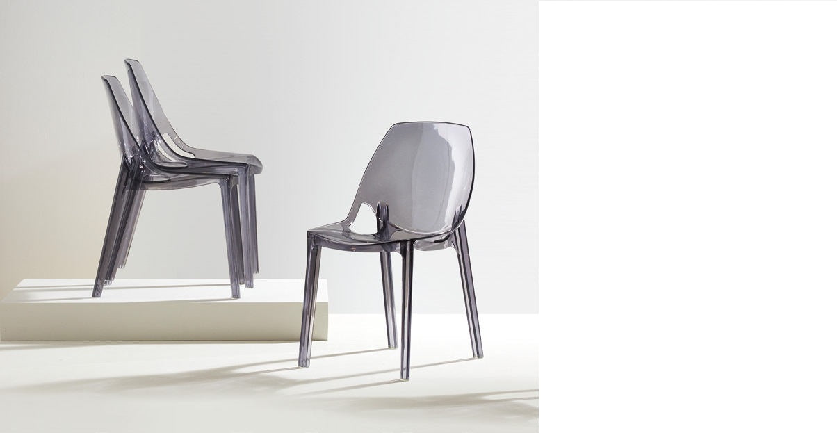 Sedia in polipropilene fumè. Misure L. 53.5 P. 46 H. 81.5 altezza seduta 45