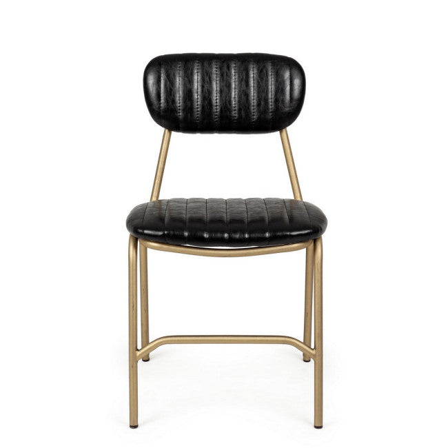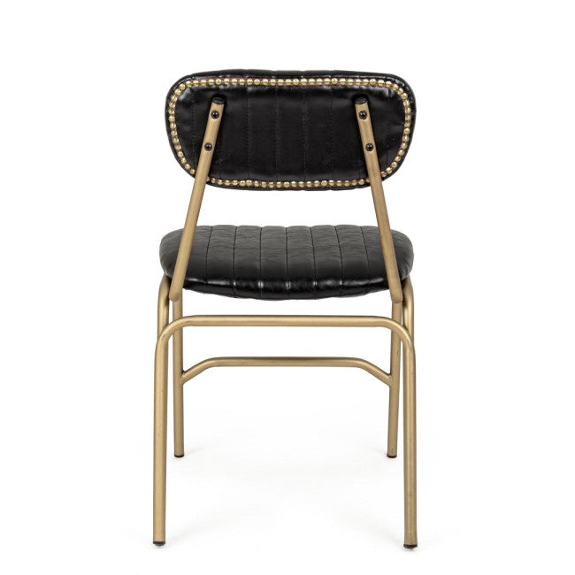 STRUTTURA IN ACCIAIO VERNICIATO A POLVERE EPOSSIDICA, RIVESTIMENTO IN SIMILPELLE. SCHIENALE CON APPLICAZIONE DI BORCHIE IN METALLO. DENSITA' IMBOTTITURA IN SCHIUMA POLIURETANICA SEDUTA E SCHIENALE 21KG/M3.
