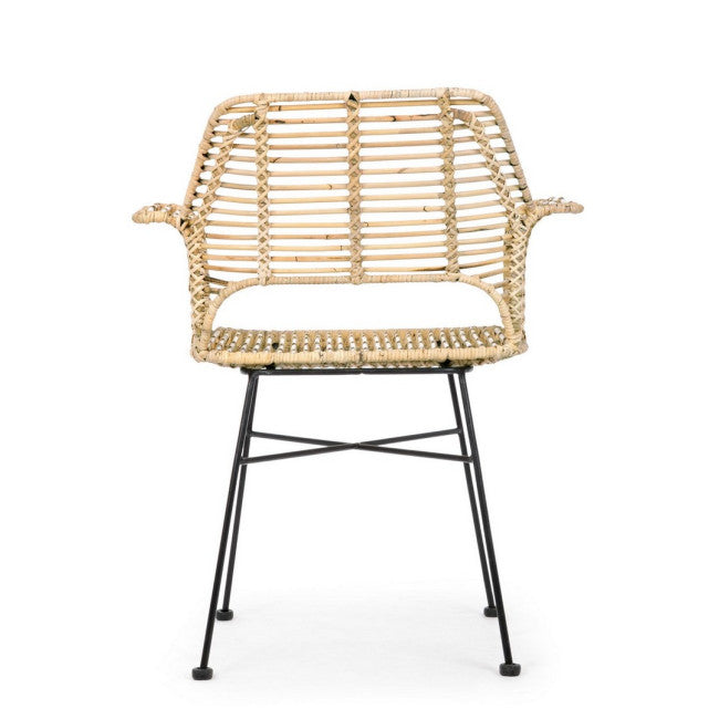 STRUTTURA IN ACCIAIO VERNICIATO A POLVERE EPOSSIDICA, INTRECCIO IN KUBU, RIFINITURA NATURALE CON VERNICE MELAMINICA. SI RACCOMANDA DI NON ESPORRE ALLA LUCE DIRETTA DEL SOLE ED ALLE INTEMPERIE. GAMBE DA ASSEMBLARE.