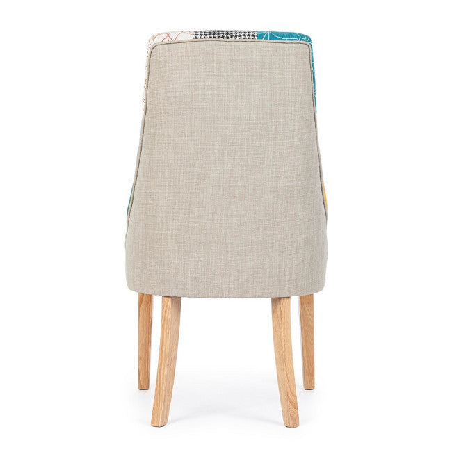 STRUTTURA IN RUBBERWOOD E COMPENSATO, VERNICIATURA A BASE DI NITROCELLULOSA. RIVESTIMENTO IN POLIESTERE CON LAVORAZIONE PATCHWORK. DENSITA' IMBOTTITURA SEDUTA 36KG/M3. GAMBE DA ASSEMBLARE.