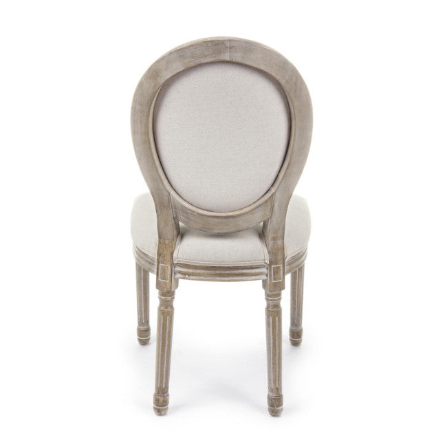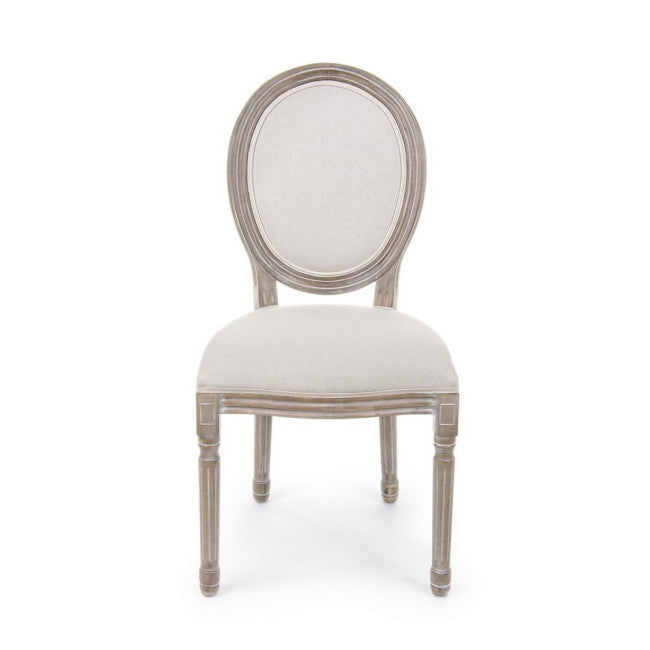 STRUTTURA IN LEGNO DI BETULLA. SEDUTA E SCHIENALE RIVESTITI IN TESSUTO (40% POLIESTERE, 30% COTONE E 30% LINO).