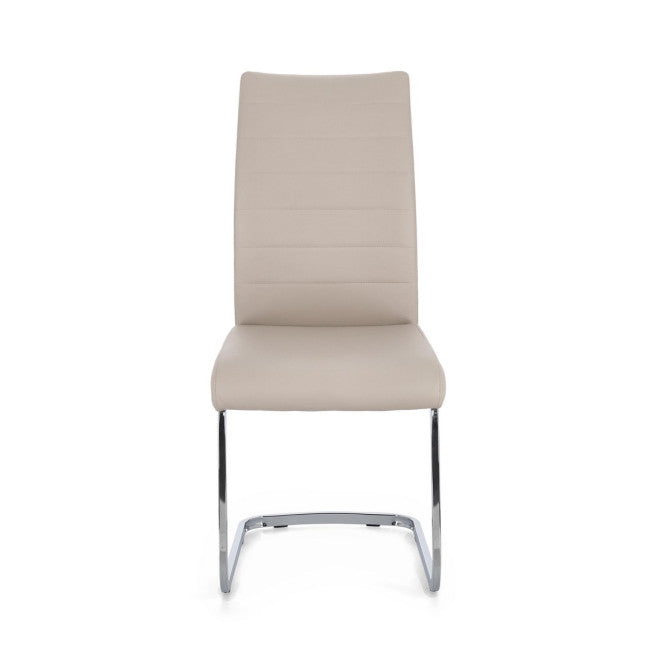STRUTTURA SEDUTA E SCHIENALE IN COMPENSATO. GAMBE IN TUBOLARE DI ACCIAIO CROMATE. IMBOTTITURA IN SCHIUMA POLIURETANICA E RIVESTIMENTO IN SIMILPELLE. DA ASSEMBLARE.