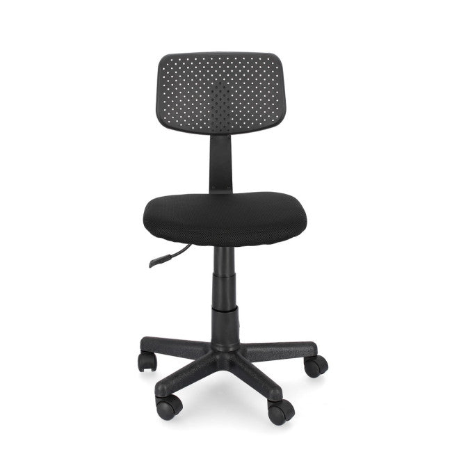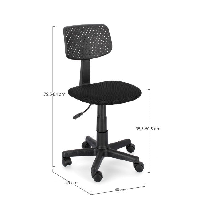 BASE IN NYLON Ø48 CM. RUOTE IN NYLON. SEDUTA IMBOTTITA IN SCHIUMA E RIVESTITA IN TESSUTO A RETE POLIESTERE 100%. SCHIENALE IN PLASTICA (PP). ALTEZZA REGOLABILE. DA ASSEMBLARE.