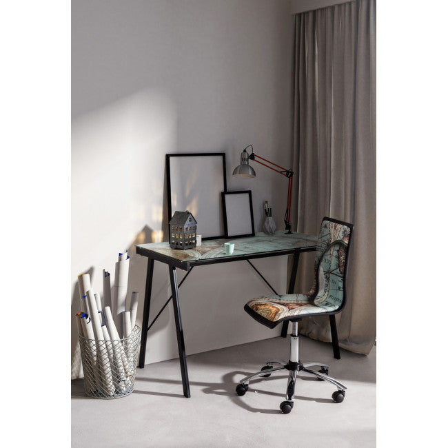 BASE IN ACCIAIO CROMATO Ø60 CM. RUOTE IN PLASTICA (NYLON). SEDUTA IN LAMINATO IMBOTTITA IN SCHIUMA POLIURETANICA E RIVESTITA IN SIMILPELLE STAMPATA. ALTEZZA REGOLABILE. DA ASSEMBLARE