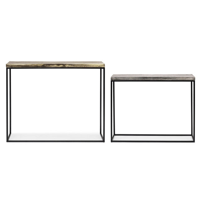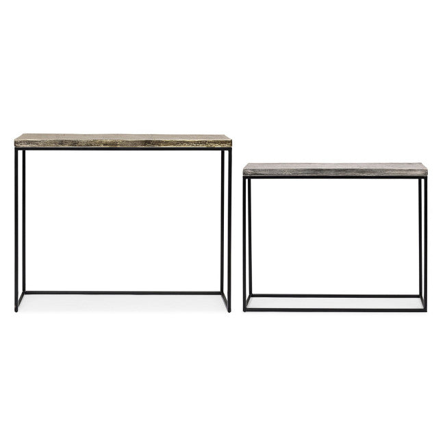 STRUTTURA IN ACCIAIO VERNICIATA A POLVERE EPOSSIDICA. PIANO IN ALLUMINIO CON FINITURA PLACCATA ED ANTICATA.