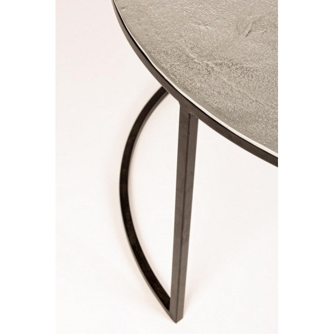 STRUTTURA IN ACCIAIO VERNICIATA A POLVERE EPOSSIDICA. PIANO IN ALLUMINIO CON FINITURA PLACCATA ED ANTICATA.