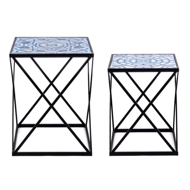 STRUTTURA IN ACCIAIO VERNICIATA A POLVERE EPOSSIDICA. PIANO IN MDF CON DECORAZIONI STAMPATE.