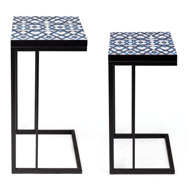 STRUTTURA IN ACCIAIO VERNICIATA A POLVERE EPOSSIDICA. PIANO IN MDF CON DECORAZIONI STAMPATE.