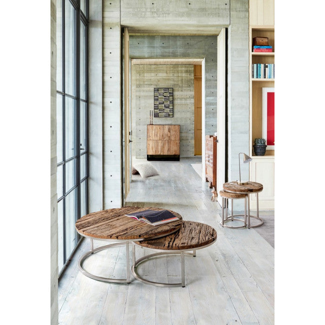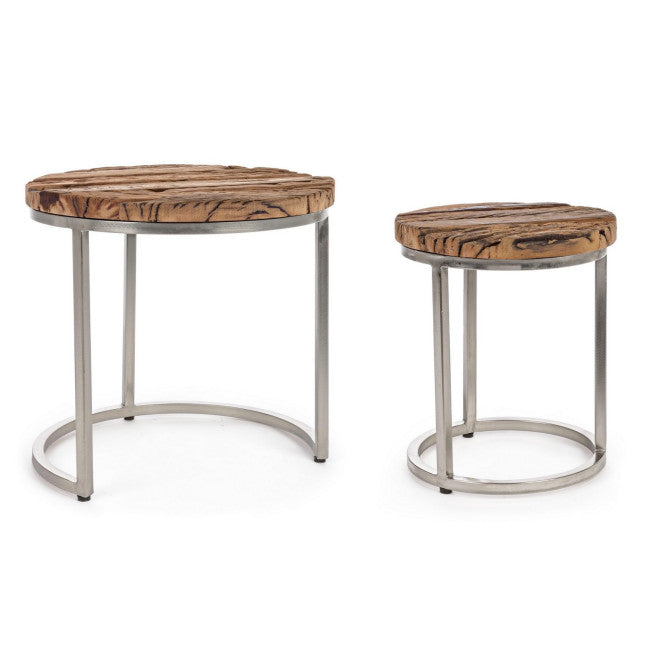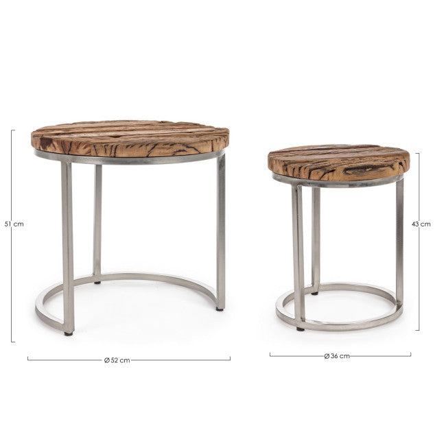 STRUTTURA IN ACCIAIO CON FINITURA NICKEL, PIANO IN LEGNO RICICLATO.