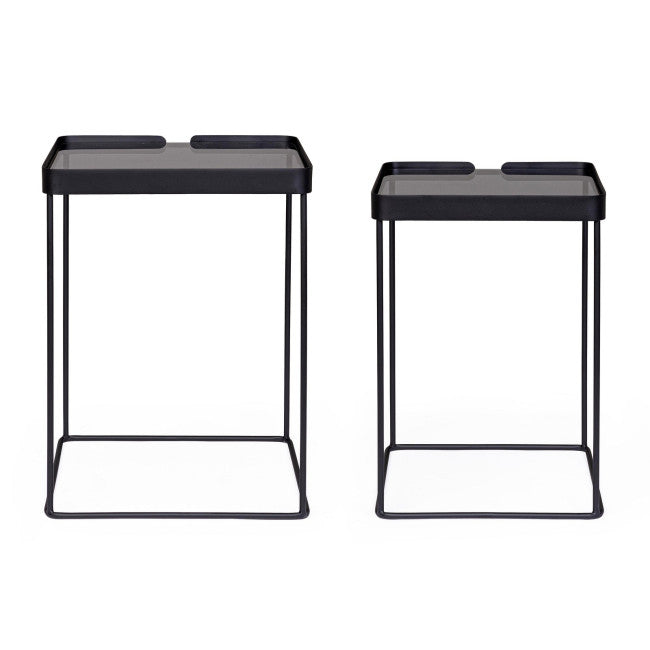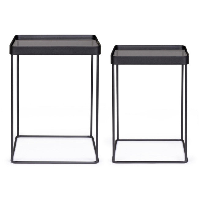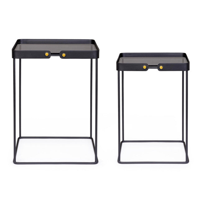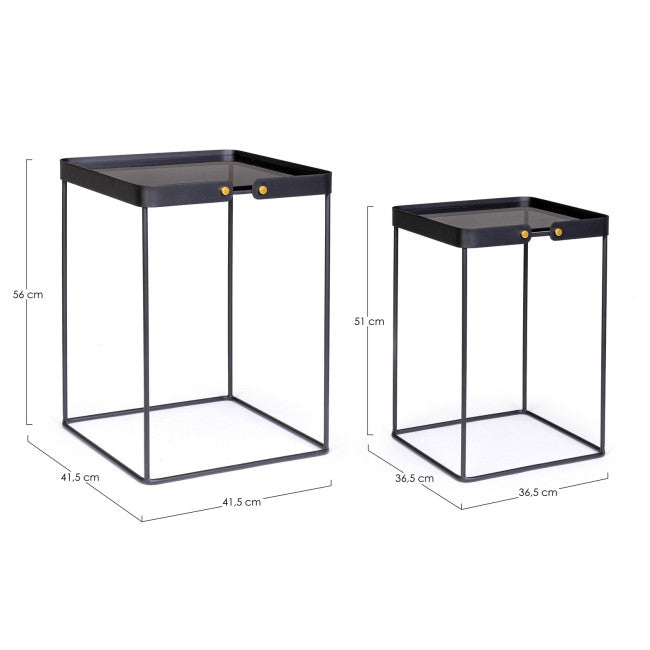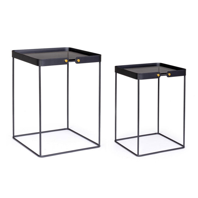 STRUTTURA IN ACCIAIO, VERNICIATA A POLVERE EPOSSIDICA. PIANO IN VETRO TEMPERATO.