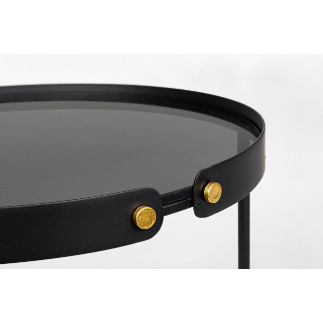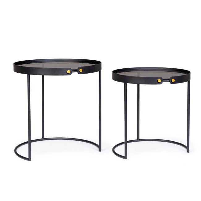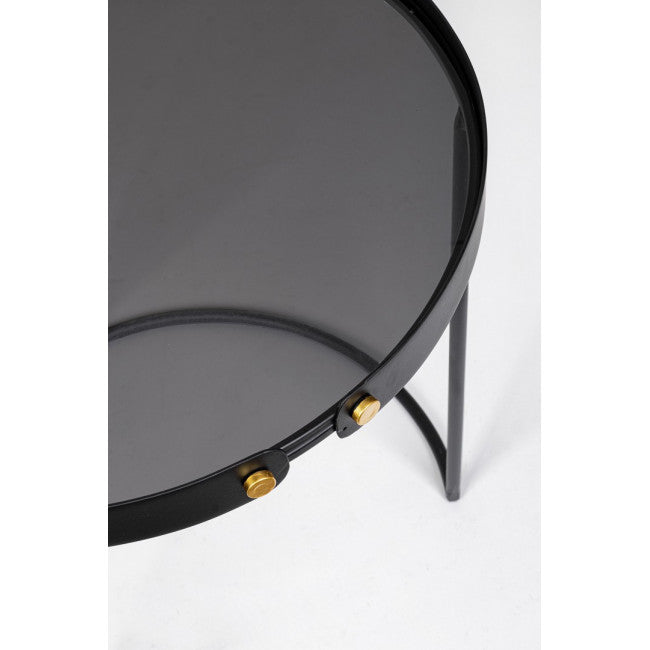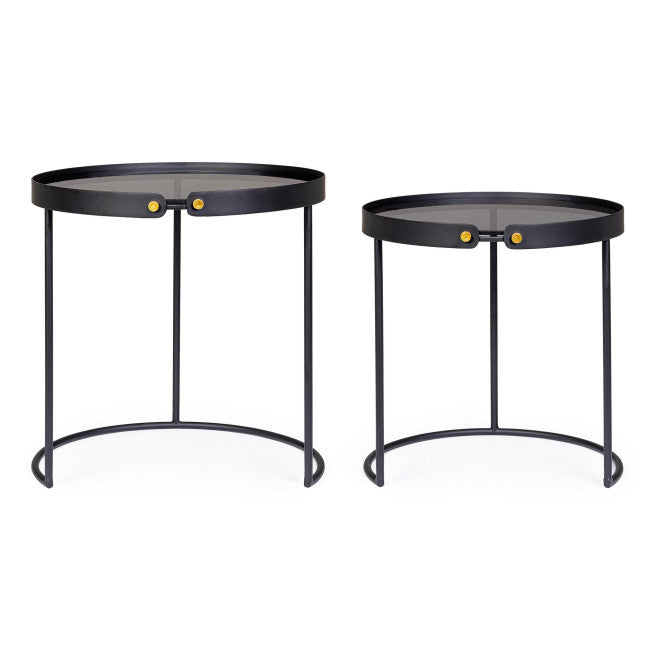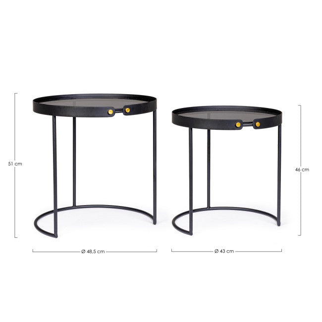 STRUTTURA IN ACCIAIO, VERNICIATA A POLVERE EPOSSIDICA. PIANO IN VETRO TEMPERATO.