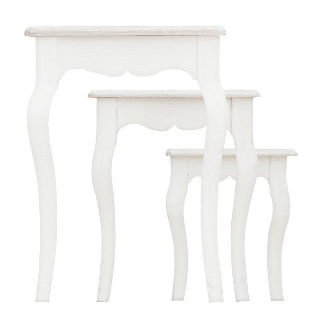 MDF. RIPIANI E FRONTALI CON MOTIVI FLOREALI INTARSIATI. RIFINITURA CON VERNICE OPACA A BASE D'ACQUA. MANIGLIE IN POLIRESINA.