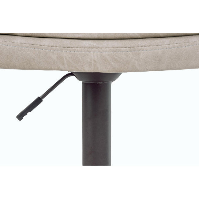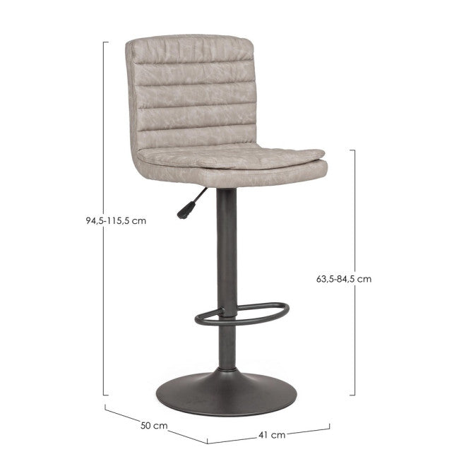 STRUTTURA GRIGIO OPACO IN ACCIAIO VERNICIATO A POLVERE (POLIESTERE). BASE Ø 41CM. IMBOTTITURA IN SCHIUMA POLIURETANICA NUOVA E RICICLATA DENSITA' 26 KG/M3. RIVESTIMENTO IN SIMILPELLE. ALTEZZA REGOLABILE. DA ASSEMBLARE.