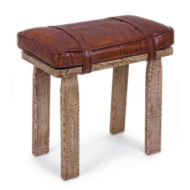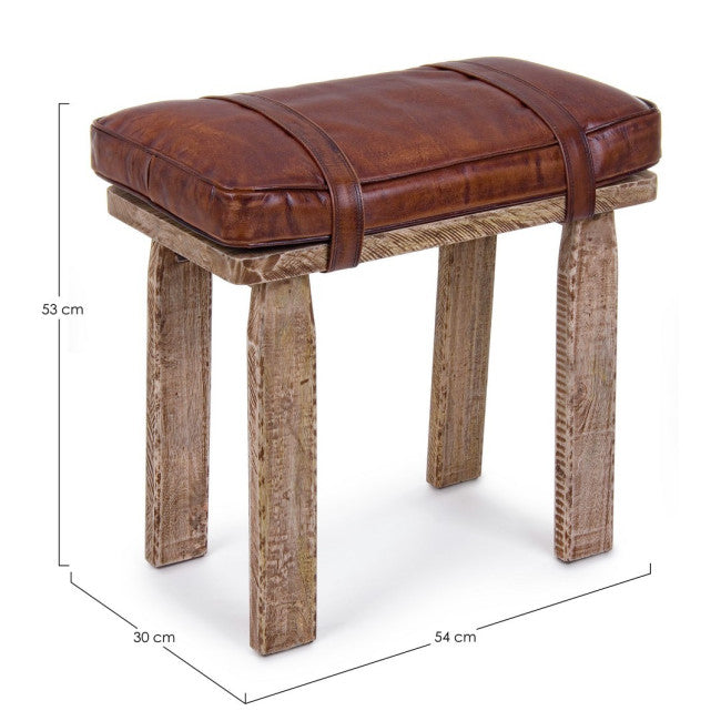 STRUTTURA IN LEGNO DI MANGO. SEDUTA IMBOTTITA IN SCHIUMA POLIURETANICA E RIVESTITA IN VERA PELLE DI BUFALO.