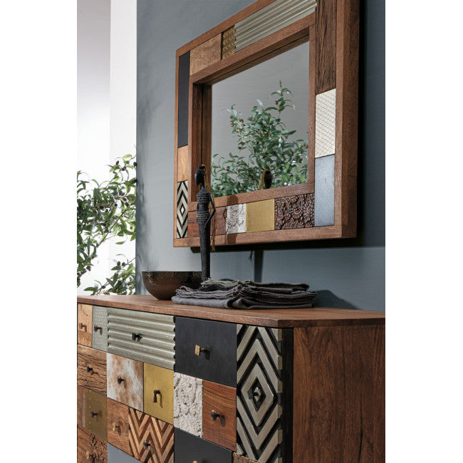 STRUTTURA IN LEGNO RICICICLATO DI MANGO ED ACACIA, SCHIENALE IN MDF. POSIZIONABILE IN VERTICALE /ORIZZONTALE. MISURA SPECCHIO: 70X40