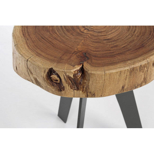 PIANO IN LEGNO D'ACACIA (SEZIONI ORIGINALI DI TRONCO), GAMBE IN ACCIAIO VERNICIATO A POLVERE EPOSSIDICA. FINITURA A BASE DI VERNICE POLIURETANICA. LE FORME E LE MISURE CREATE DAL LEGNO SONO SOLO INDICATIVE. TUTTI I PRODOTTI SARANNO DIVERSI L'UNO DALL'ALTRO. GAMBE DA ASSEMBLARE.