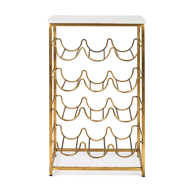 STRUTTURA IN ACCIAIO CON FINITURA OTTONATA. PIANO IN MARMO.COMPRENSIVO DI PORTABOTTIGLIE