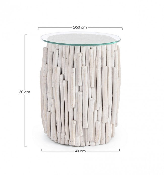 RAMI DI TEAK SBIANCATO CON FINITURA A BASE DI NITROCELLULOSA. VETRO NON TEMPERATO 8MM. SOLO PER USO INTERNO.