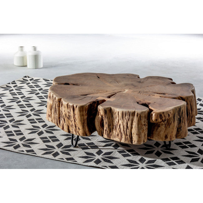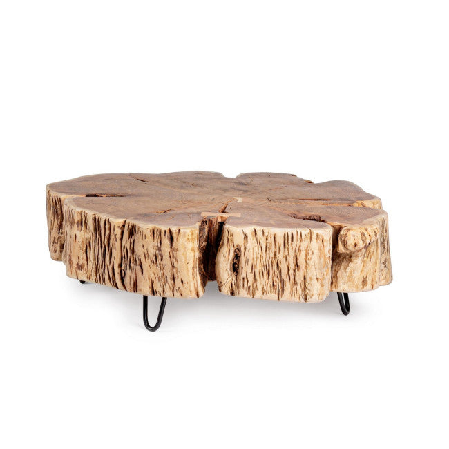 PIANO IN LEGNO DI ACACIA (SEZIONE ORIGINALE DI TRONCO). GAMBE IN ACCIAIO VERNICIATO A POLVERE EPOSSIDICA. FINITURA A BASE DI VERNICE POLIURETANICA. LE FORME CREATE DAL LEGNO SONO INDICATIVE. TUTTI I PRODOTTI SARANNO LEGGERMENTE DIVERSI L'UNO DALL'ALTRO. GAMBE DA ASSEMBLARE.
