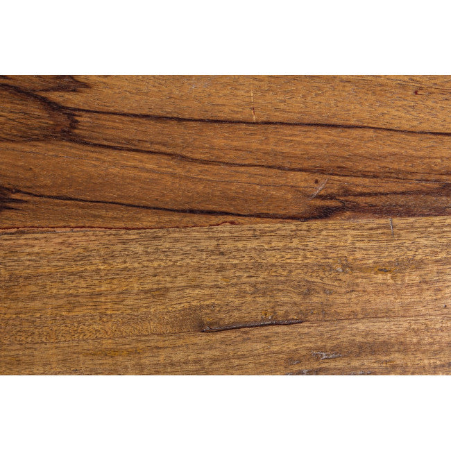 BASE ORIGINALE RICICLATA IN ACCIAIO, PIANO IN LEGNO RICICLATO. FINITURA A BASE DI NITROCELLULOSA. IL LEGNO RICICLATO PREVEDE IN PRODUZIONE RITAGLI DI LEGNO A COPERTURA DEI FORI ORIGINARIAMENTE PRESENTI NEL PRODOTTO. DATO L'UTILIZZO DI DIVERSE TIPOLOGIE DI LEGNO, EVENTUALI FESSURAZIONI SONO DA CONSIDERARSI COME CARATTERISTICA NATURALE DI QUESTO ARTICOLO.