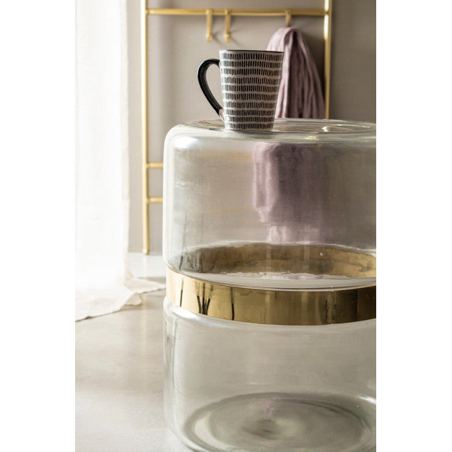 VETRO CON ANELLO DECORATIVO IN ACCIAIO PLACCATO OTTONE, COLORE ORO